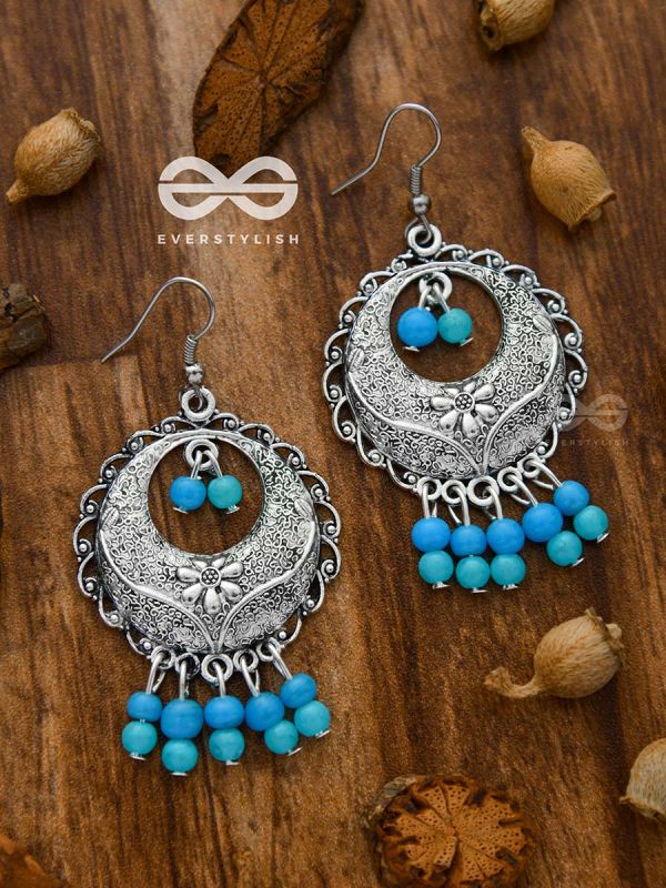 The Colourful Intricacy (Teal-Blue)- Oxidised Boho Earrings
