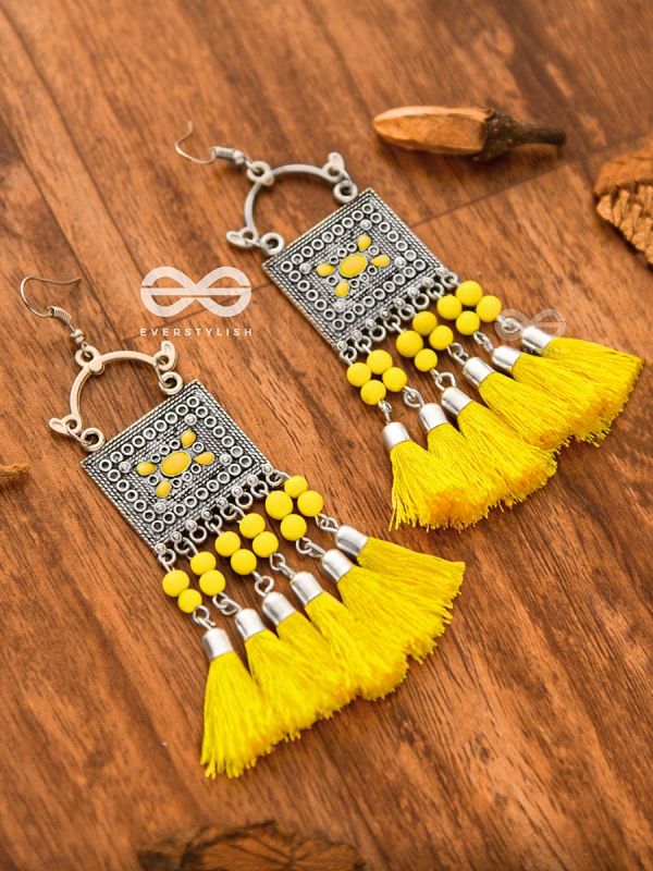 The Enamelled Tassel Squares(Bumblebee) - Oxidised Boho Earrings