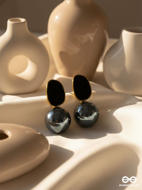 The Mesmerisingly Chic Statement Makers- Enamelled Pearl Earrings (Gun-Metal Grey)
