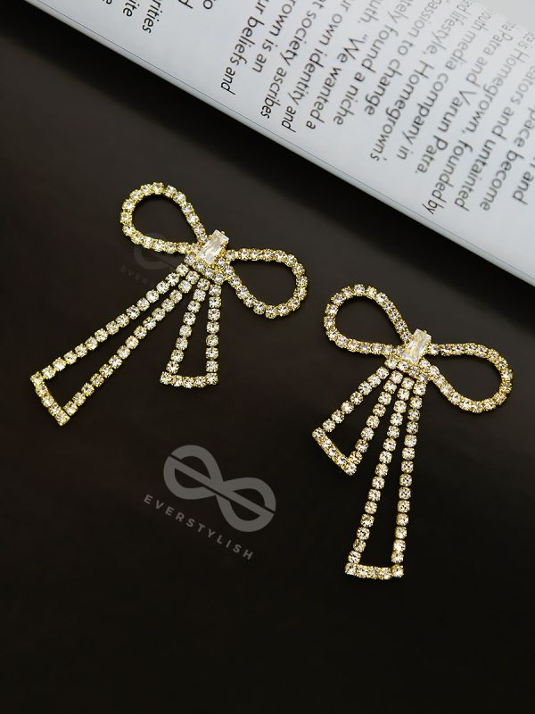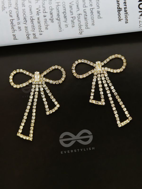 The Bedazzled Bowknots - Statement Golden Earrings