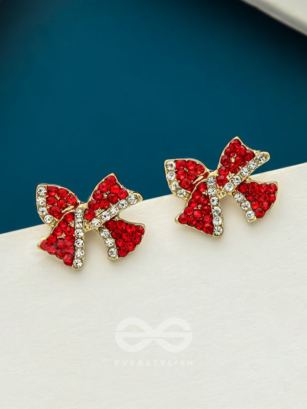 The Bond of Passion- Golden Rhinestones Earrings (Ruby Red)