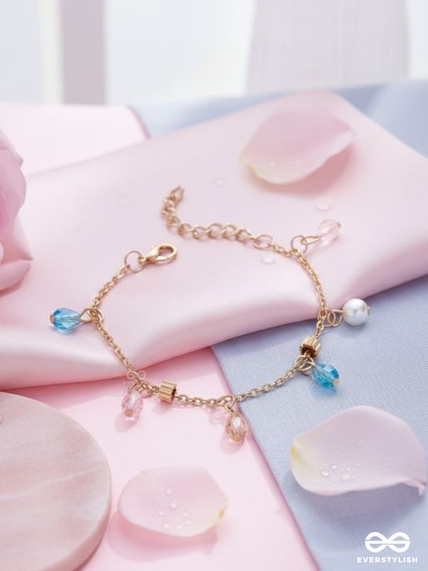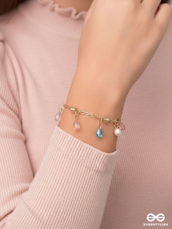 The Shimmering Sleet- Pearl and Crystals Studded Golden Bracelet