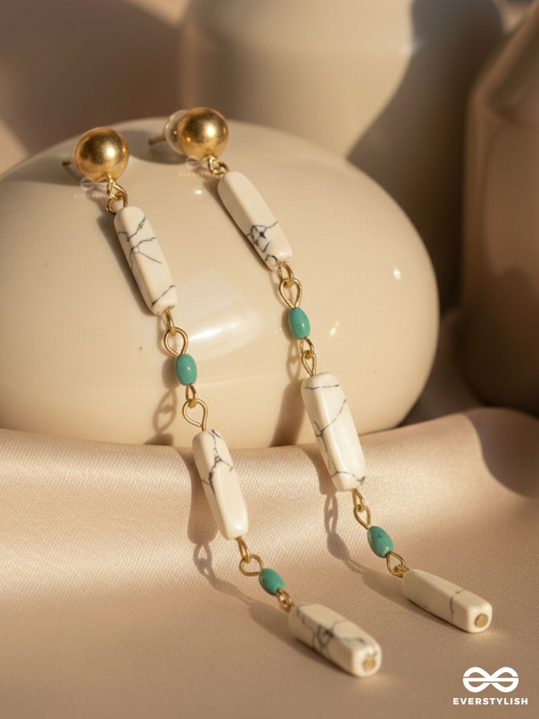 Marble-lous - Blue and White Stone Studded Golden Earrings