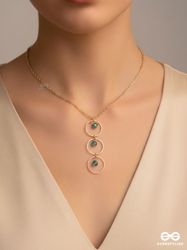 The Drizzly Woods- Blue And Golden Crystal Beads Necklace With Anti-Tarnish Coating