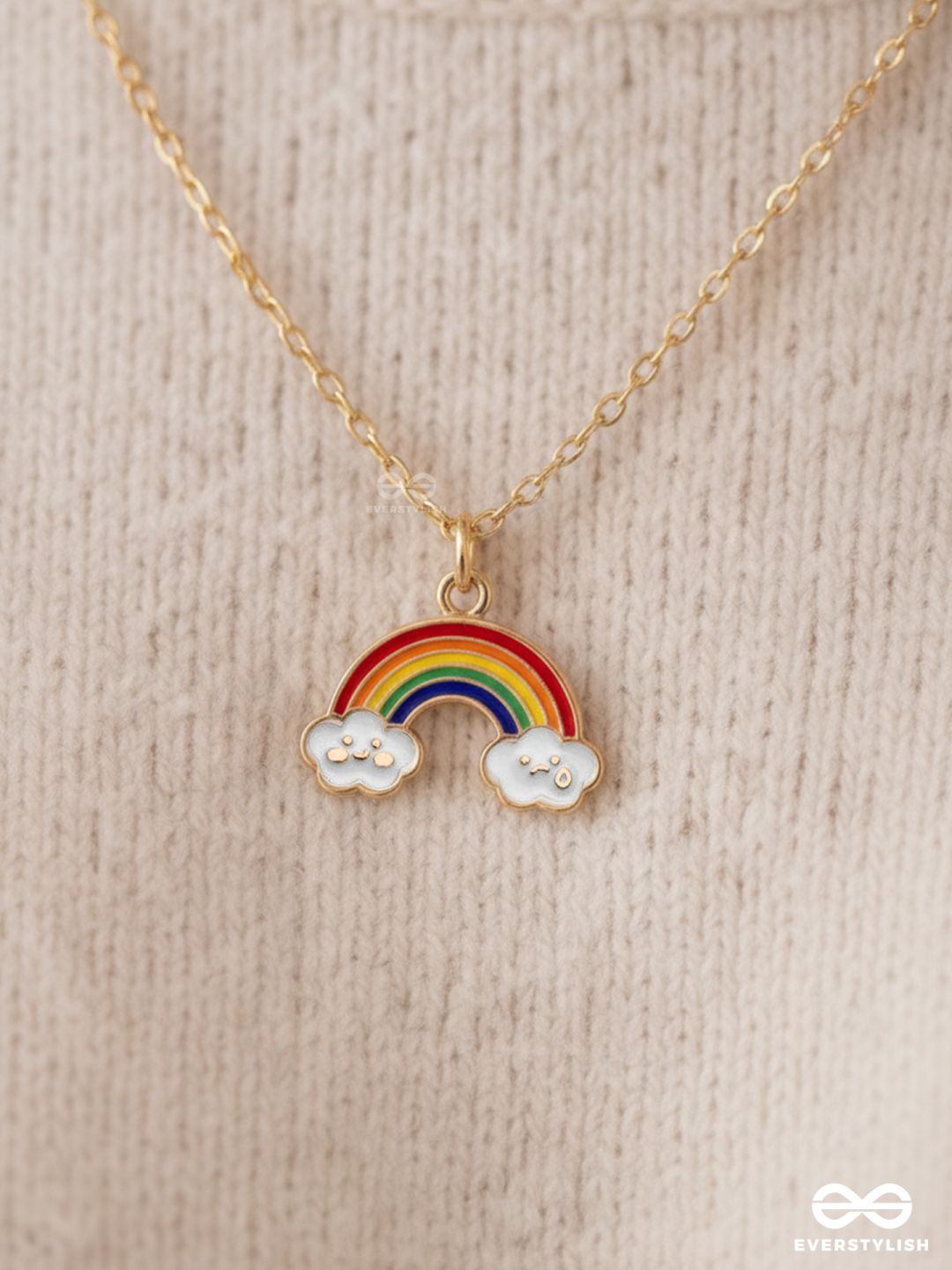 The Rainbow Colors- Golden Embellished Necklace With Anti-Tarnish Coating