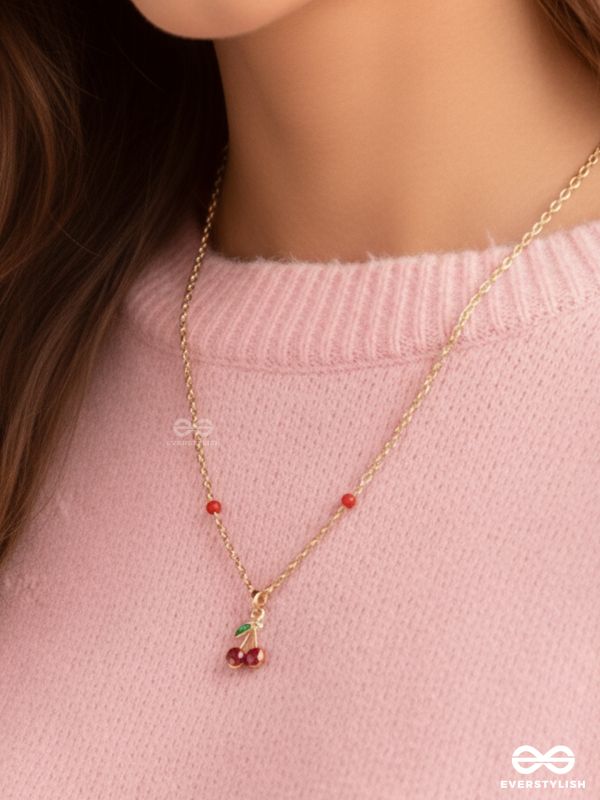 Cherry On The Cake- Golden Embellished Necklace With Anti-Tarnish Coating