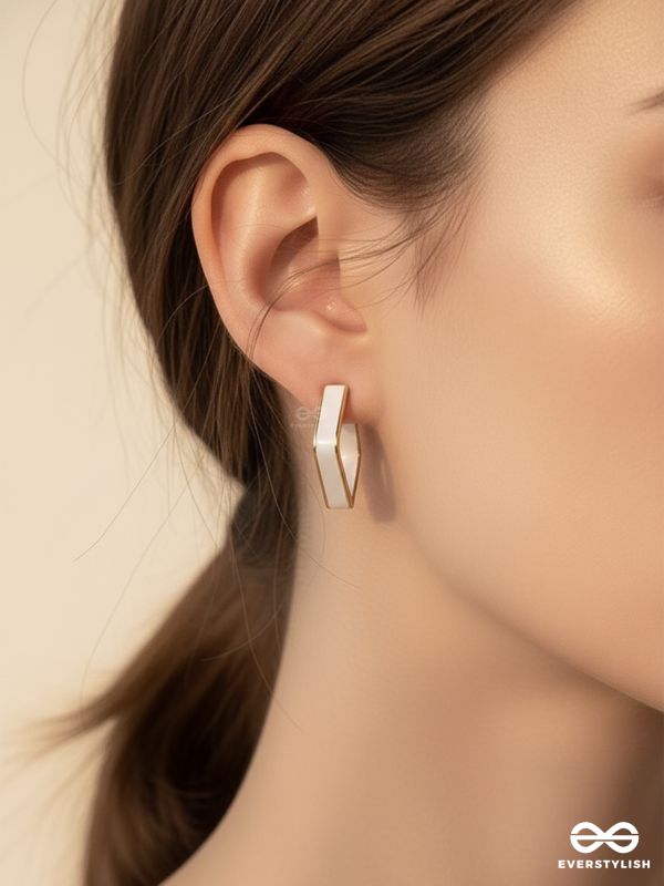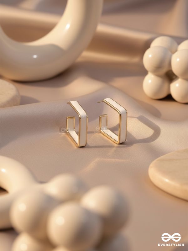 ONCE UPON A SQUARE - GOLDEN ENAMELLED EARRINGS (WHITE)