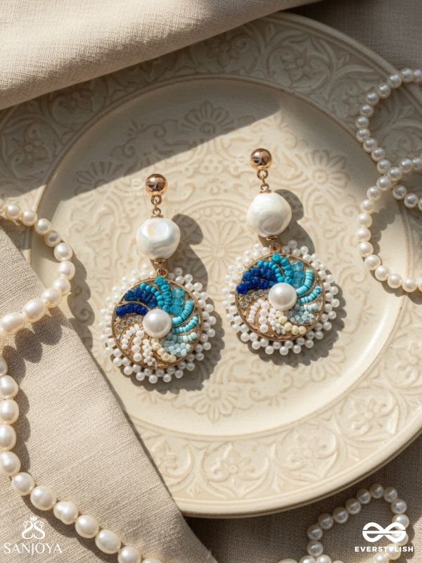 Nirghata- The Tidal Storm- Resham, Beads And Pearl Hand Embroidered Earrings