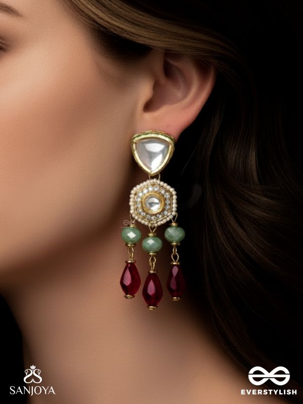 Prenkha - Scarlet Sways - Golden Embellished Polki And Kundan Earrings