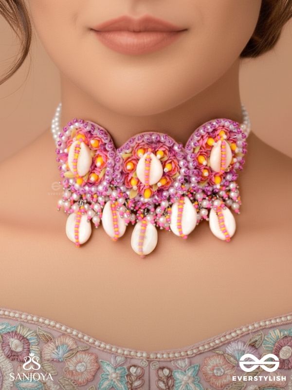 DRAPA - OCEAN MELODY BLOSSOMS - SHELL AND BEADS EMBROIDERED NECKLACE