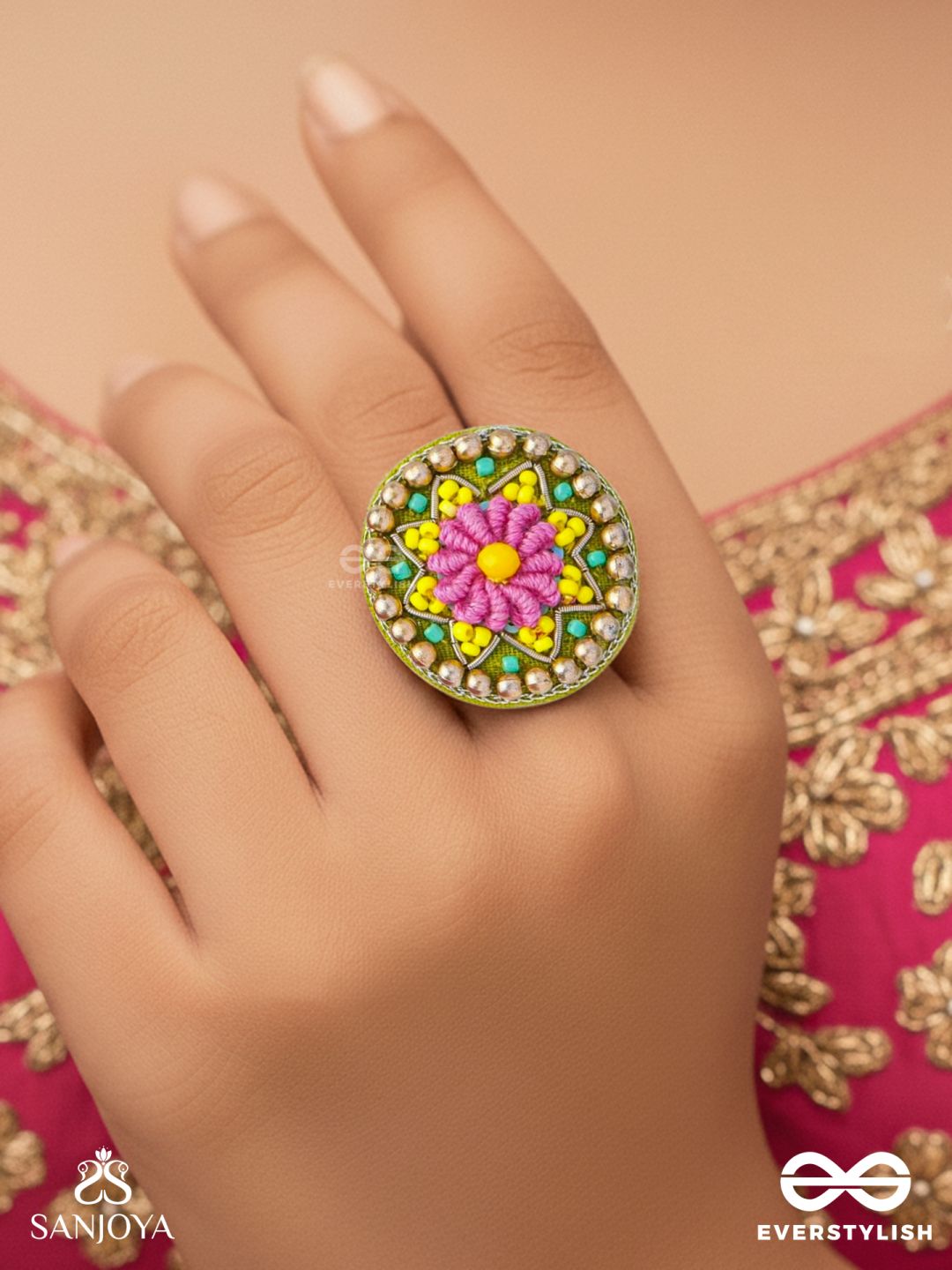 Praphulti - Blooming Blossom - Beads And Resham Hand Embroidered Ring (Adjustable)