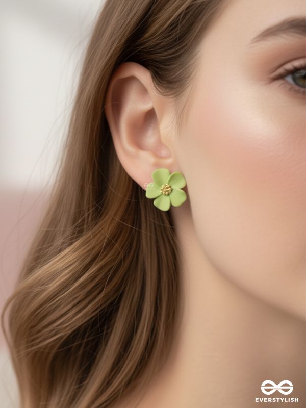 THE BLOSSOM BALLAD - GOLDEN AND GREEN ACRYLIC STUD EARRINGS