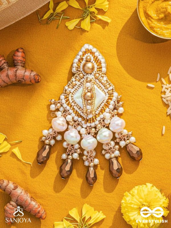 Hairanyika - The Ivory Aurora - Beads And Glass Drops Hand Embroidered Earrings
