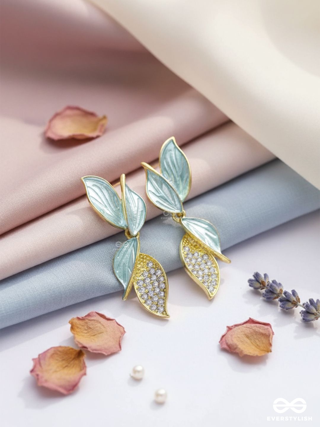 WINGS OF MAGIC - GOLDEN AND BLUE EMBELLISHED EARRINGS