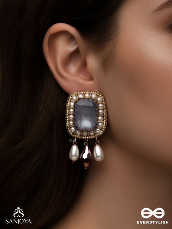 Dhumraruk - The Lavender Love- Stone, Beads, Glass And Pearl Drops Hand Embroidered Earrings