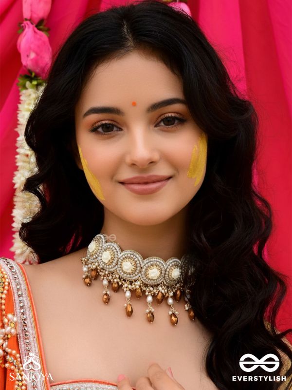 Stavaka- The Beloved Bouquet- Beads, Pearl And Glass Drops Hand Embroidered Choker Neckpiece