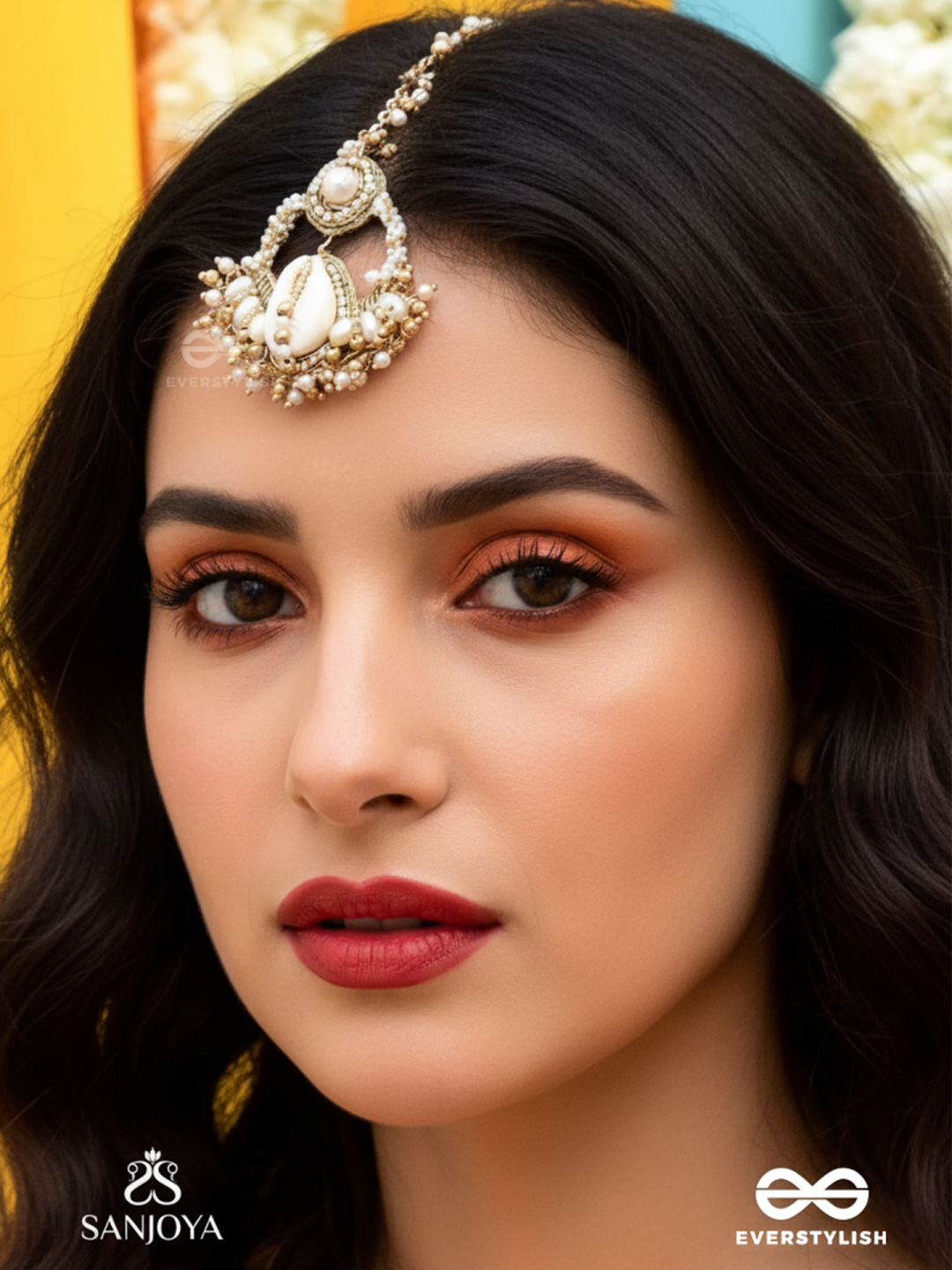 Nairjar - The Divine Blessing- Pearls, Shell And Beads Hand Embroidered Maangtika