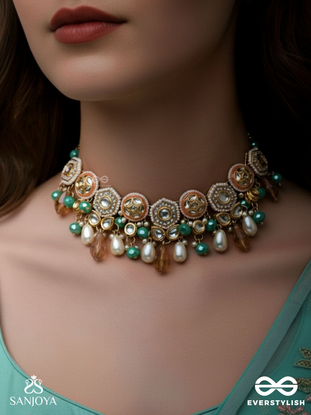 Vesht - The Dreamy Skies - Beads, Polki And Kundan Finished Hand Embroidered Neckpiece