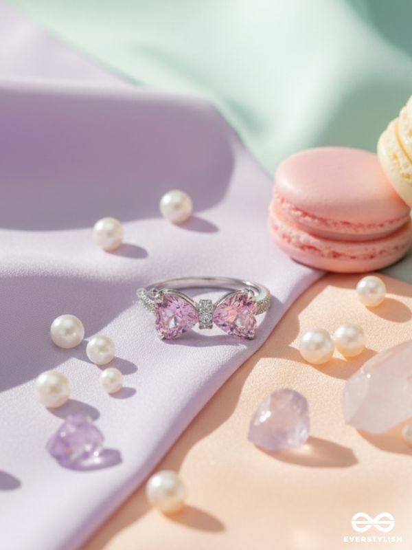 The Cindrella'S Bow - Silver Embellished Ring (Adjustable)