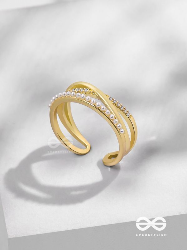 Crossroads Of Fate - Cubic Zirconia Golden Ring (Adjustable)