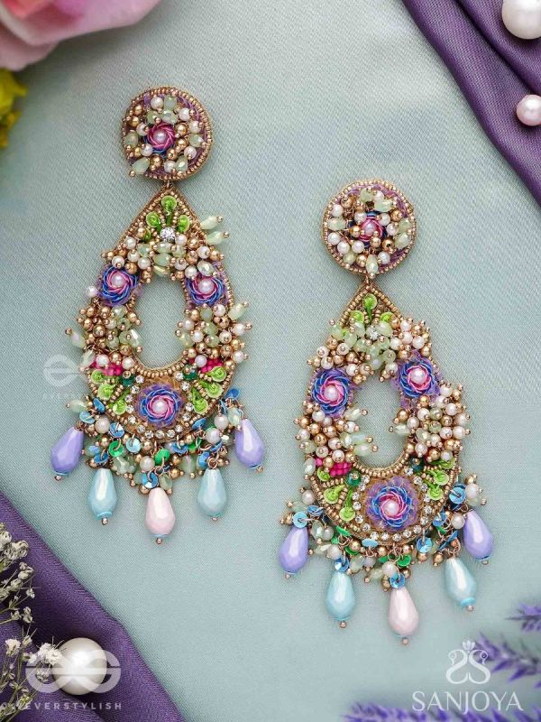 MANJUSUMANA - BEAUTIFUL BLOSSOM - SEQUINS, BEADS AND GLASS DROPS HAND EMBROIDERED EARRINGS
