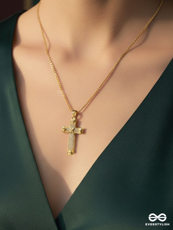 HOLY CROSS - 18K GOLD PLATED ANTI-TARNISH STATEMENT CHRIST'S CROSS NECKLACE INLAID WITH CUBIC ZICRONIA STONES