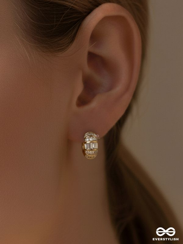 GLEAMING BAND - 18K GOLD PLATED ANTI-TARNISH CLASSY HOOPS EARRINGS INLAID WITH CUBIC ZICRONIA STONES