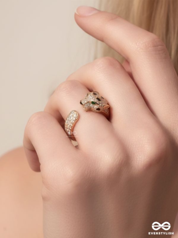MIDNIGHT PANTHER- 18K GOLD PLATED ANTI-TARNISH EMBELLISHED RING INLAID WITH CUBIC ZICRONIA STONES