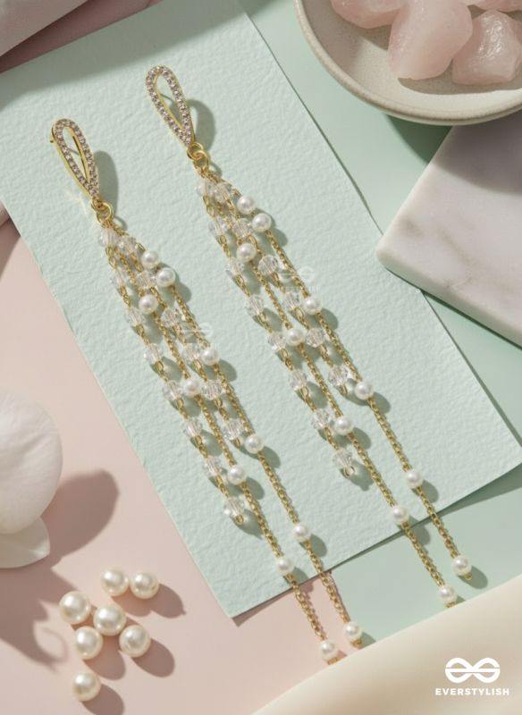 Glass sprinklings - Dangling golden bead earrings
