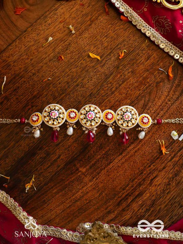 DIVYANJALI - DIVINE OFFERING- KUNDAN, PEARLS, AND RED STONES HANDMADE NECKLACE
