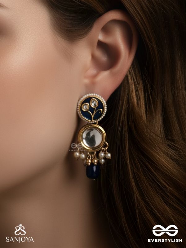 SHITALA - COOL AND CALM- KUNDAN, BLUE STONES, AND PEARLS HANDMADE EARRINGS
