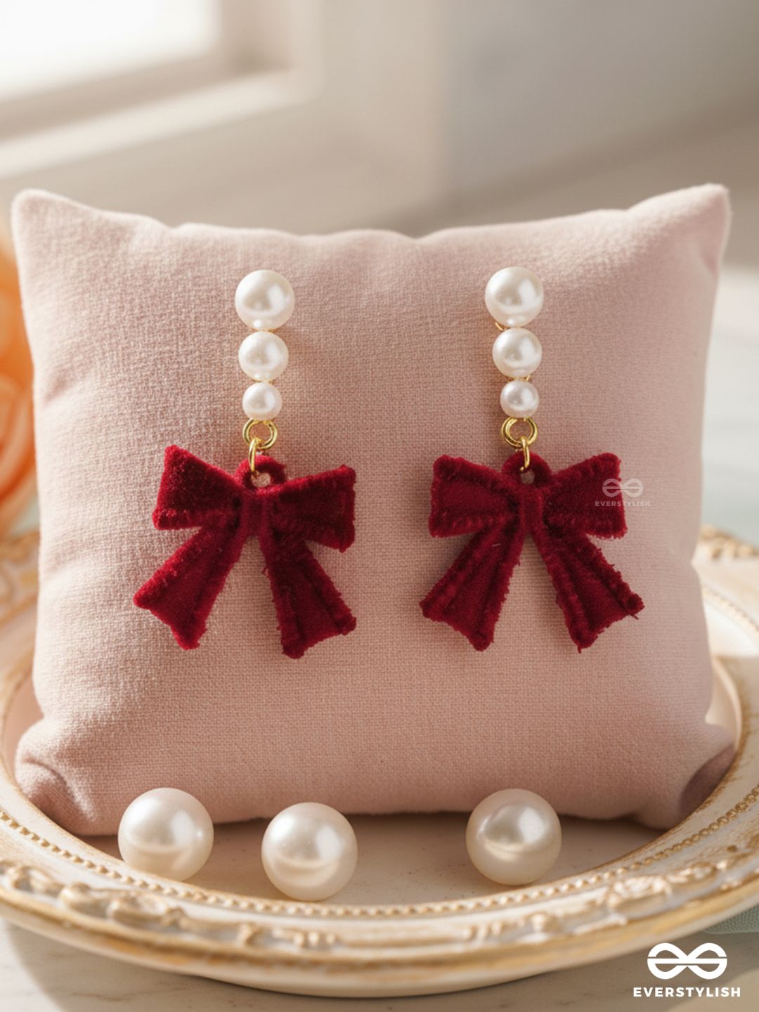 RUBY GRACE - TIMELESS RED BOW & PEARL EARRINGS