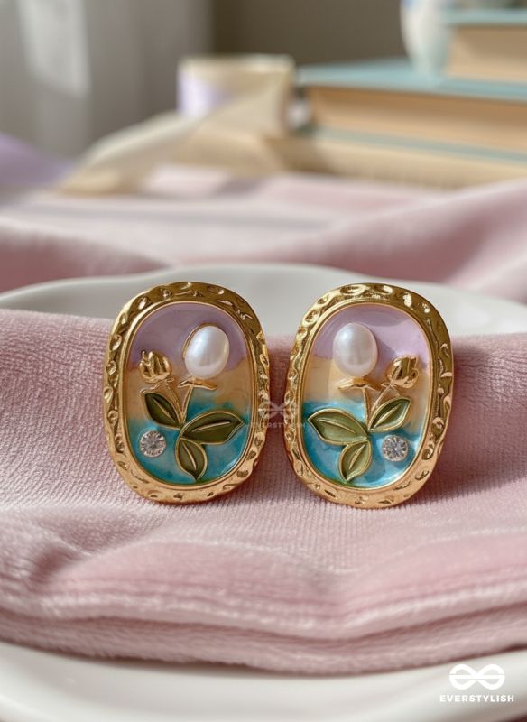 FLORAL MUSE- STATEMENT EARRINGS WITH EMBOSSED FLOWERS AND PEARLS