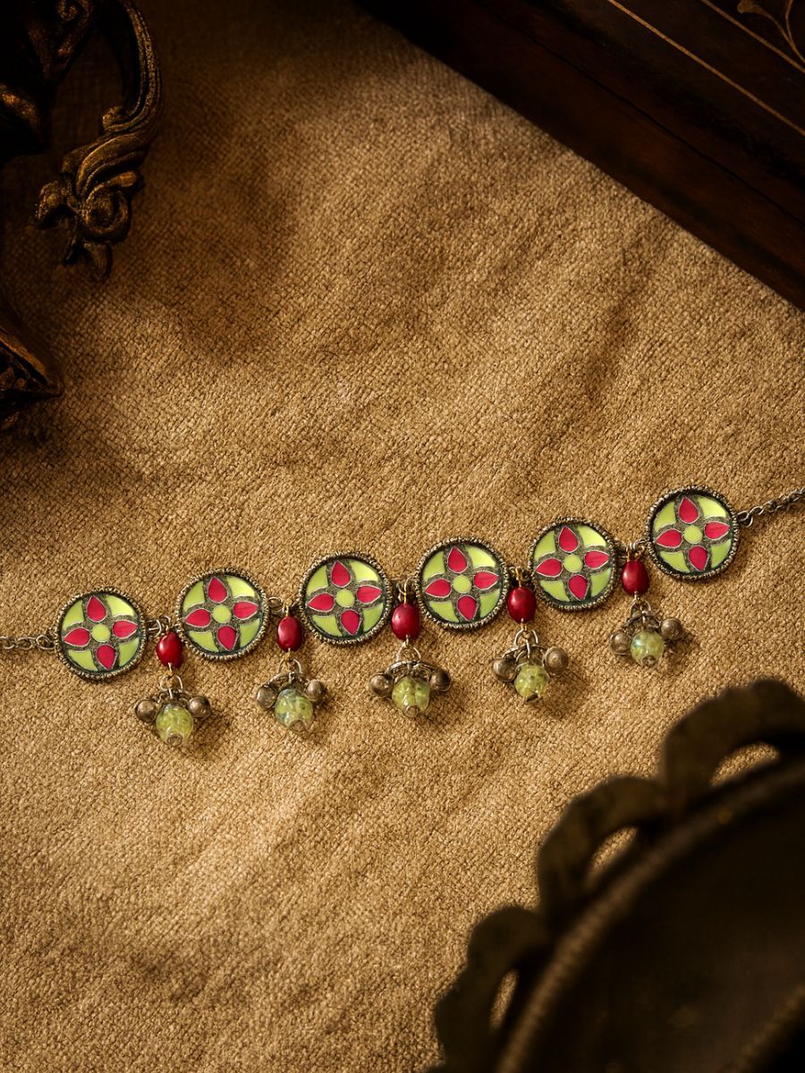 FOLK BLOOM - OXIDISED FLORAL ENAMELEED CHOKER