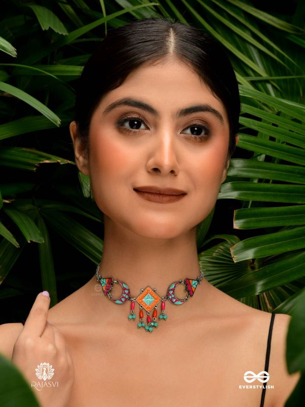 FOLK FLAIR - GEOMETRIC ENAMELLED OXIDISED NECKLACE