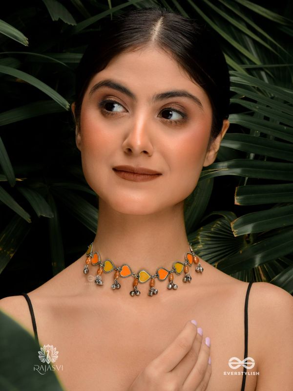 SUNBURST CHARM - ENAMELLED OXIDISED CHARM NECKLACE