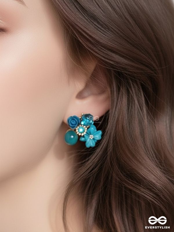 PETAL POP – CHARMING STUDS IN BLUE SHADES WITH FLOWER DETAILS