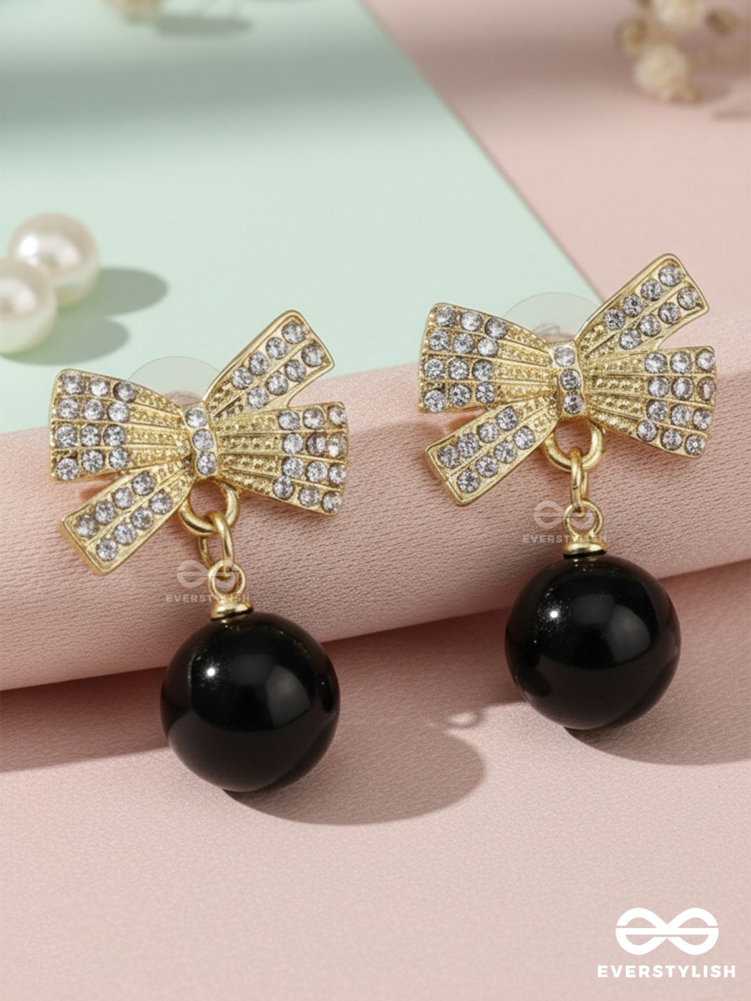 LUXE BOW – EMBELLISHED GOLD BOW EARRINGS WITH DROP BEAD