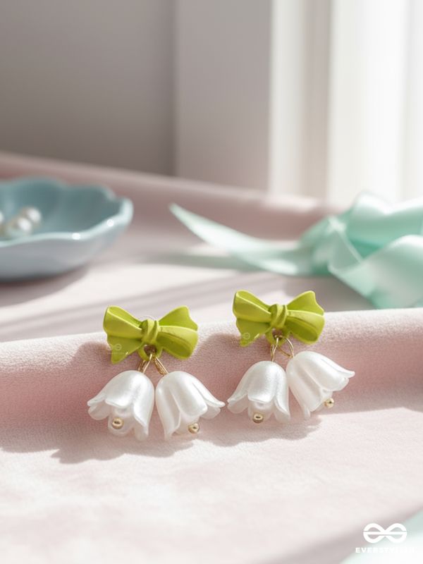 MINT BELLS – FROSTED WHITE FLORALS WITH GREEN BOW