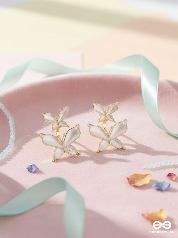 IVORY FLUTTER – PEARLY BUTTERFLY DROP EARRINGS