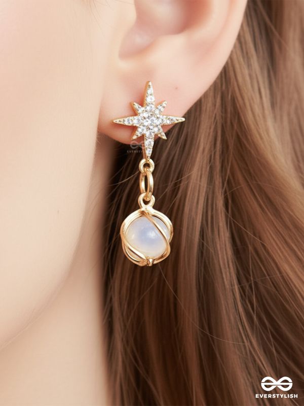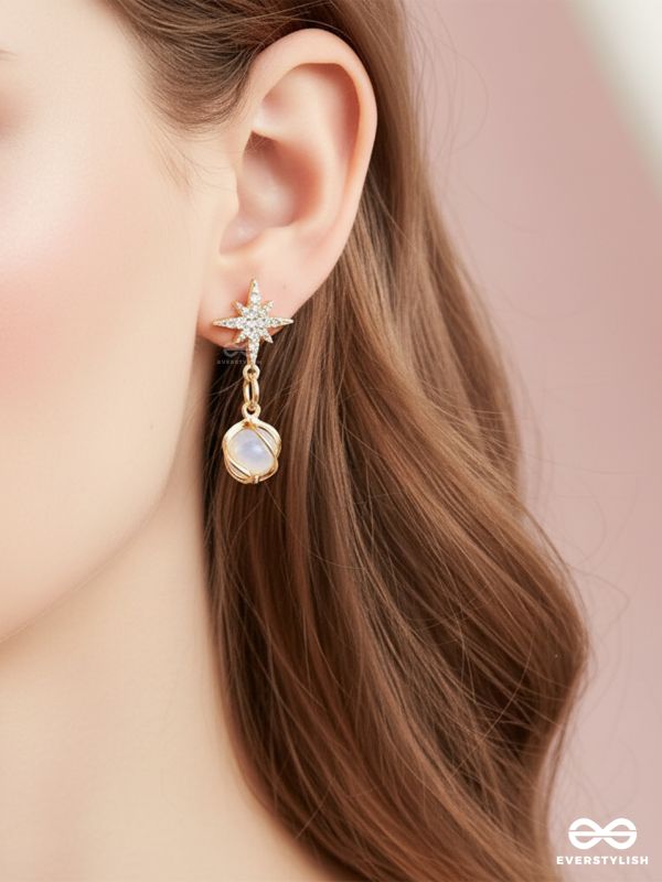 ASTRAL PEBBLE – STARBURST STUD WITH SOFT STONE DROP EARRINGS