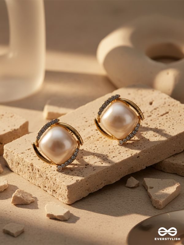 PEARL HALO FRAME – CHIC SQUARE PEARL STUD EARRINGS